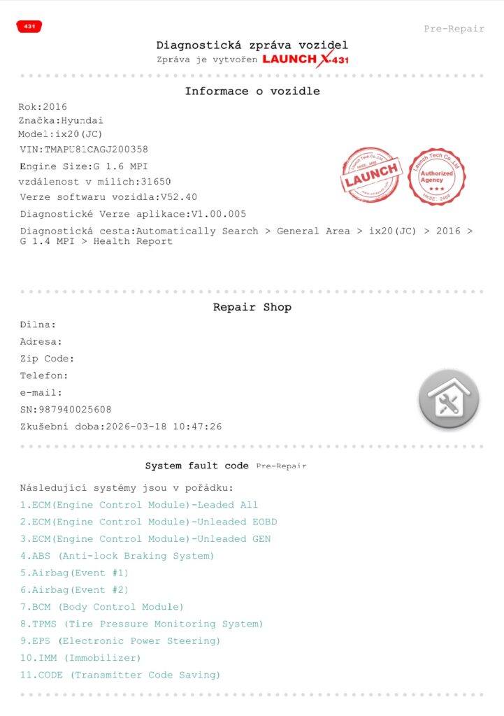Momentálně po technické kontrole platné až do 03/2028