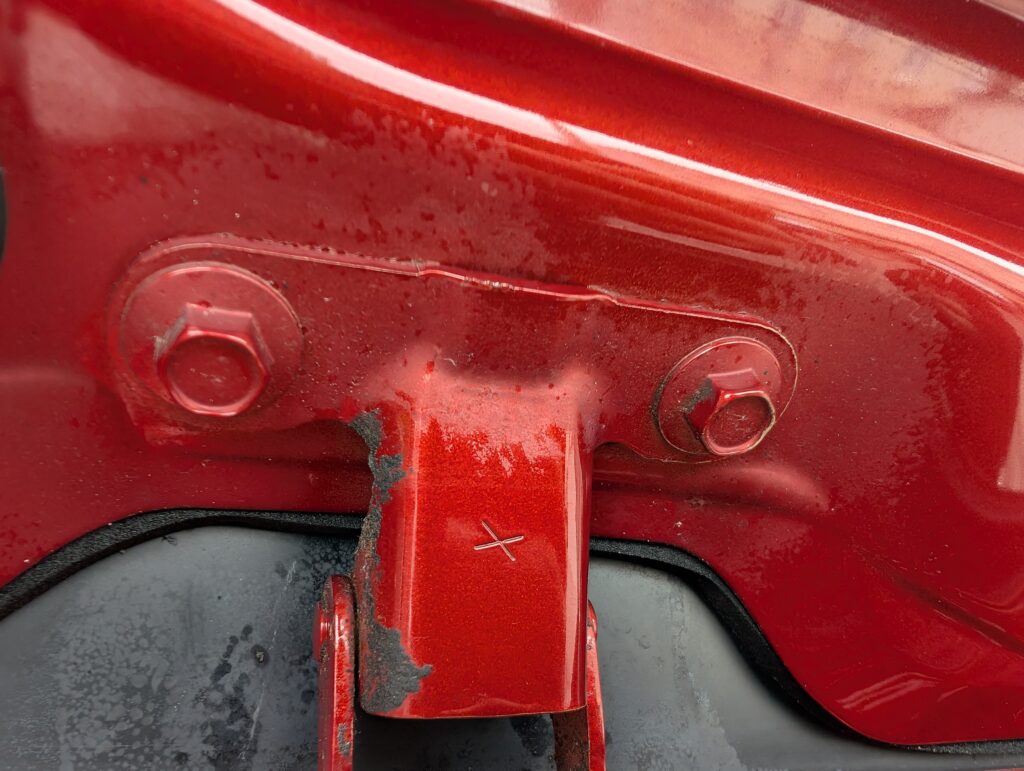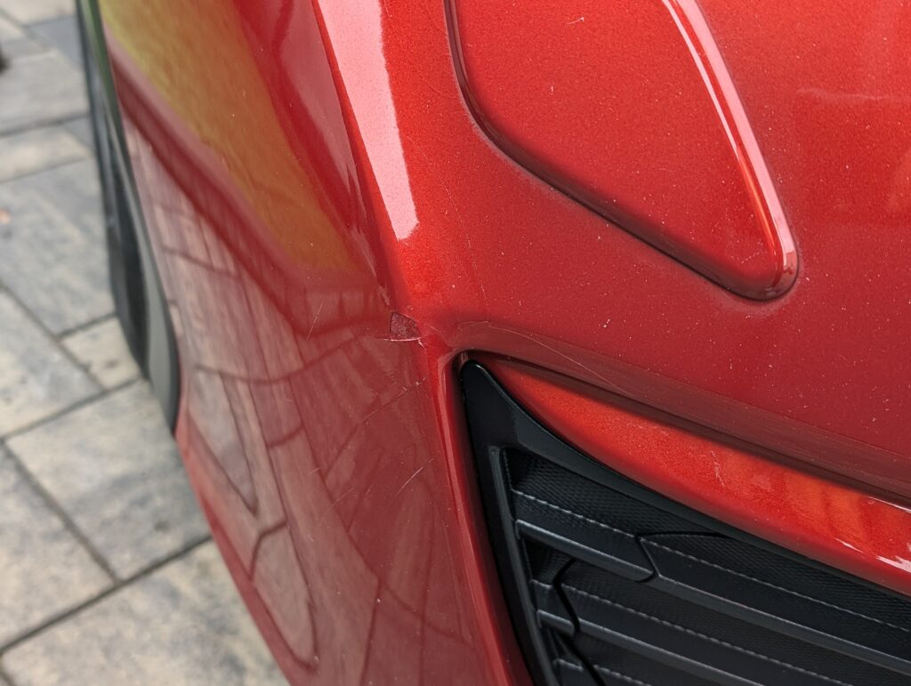 Drobná kosmetická vada na LP dveřích ( šikovný důlkař lhce opraví, lehce prasklý lak na předním nárazníku ) viz.foto