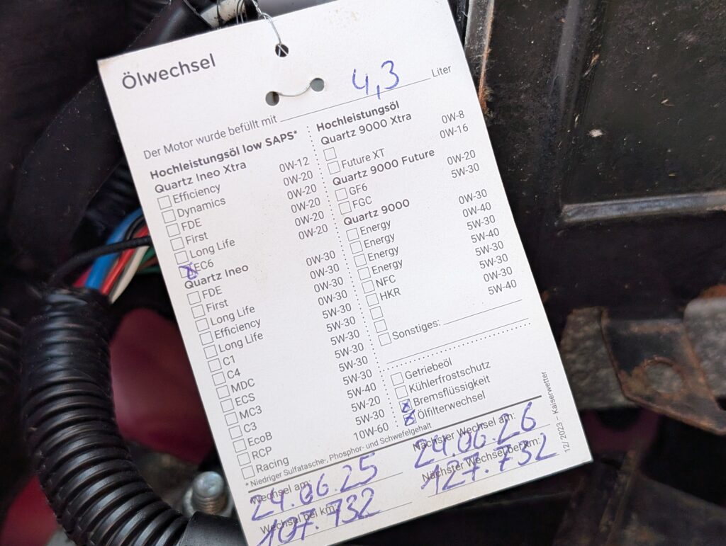 Poslední servis byl dne 24.6.2025 při 107.732km. První olejový servis byl dělaný už při 12.868km!